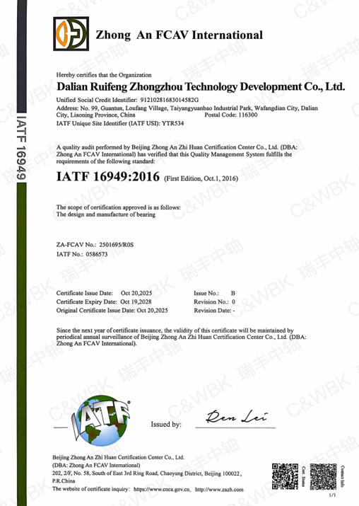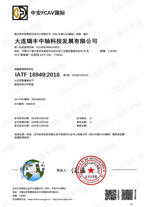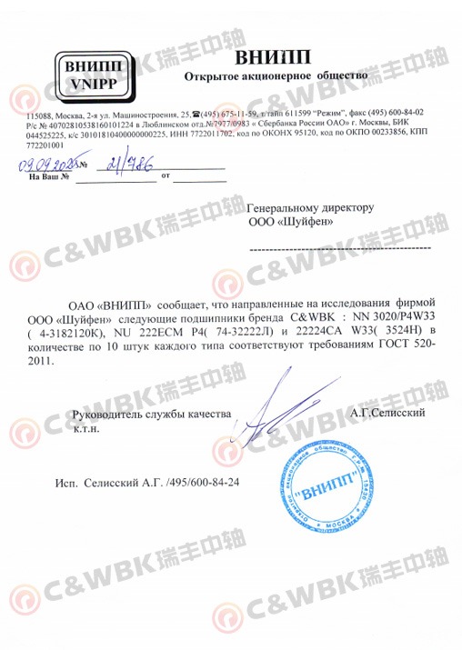 C&WBK Он прошел сертификацию системы качества IS09001, сертификацию системы управления гигиеной труда BSOHSAS 18001: 2007, сертификацию системы управления окружающей средой IS014001: 2004.